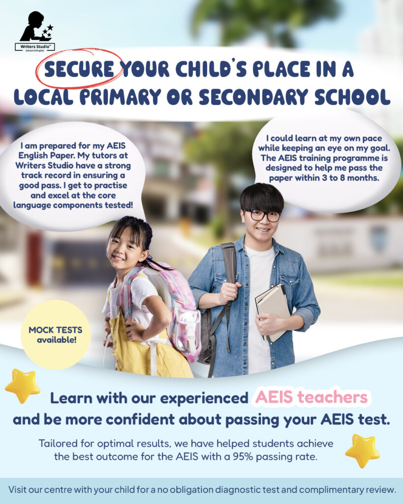 At Writers Studio, we offer classes to prepare your child for the AEIS (Admissions Exercise for International Students) exam. This annual assessment, administered by Singapore’s Ministry of Education (MOE), evaluates international students’ proficiency in English literacy and numeracy to ensure they can handle the local curriculum. The AEIS exam covers different levels, from Primary 2 to 5 and Secondary 1 to 3, and is designed for students without a place in Singaporean schools. Conducted between September and November of each year, with a supplementary session (S-AEIS) in February, the AEIS exam provides successful candidates with placement in suitable schools based on their performance and available vacancies. This exam serves as a crucial gateway for international students to access Singapore’s reputable education system.
