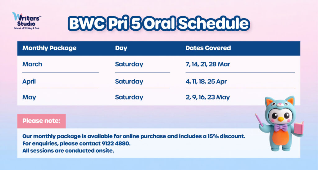 This is a dedicated oral programme, separate from STELLAR. While STELLAR includes oral components monthly, this course is a full oral-focused programme designed specifically for PSLE preparation.