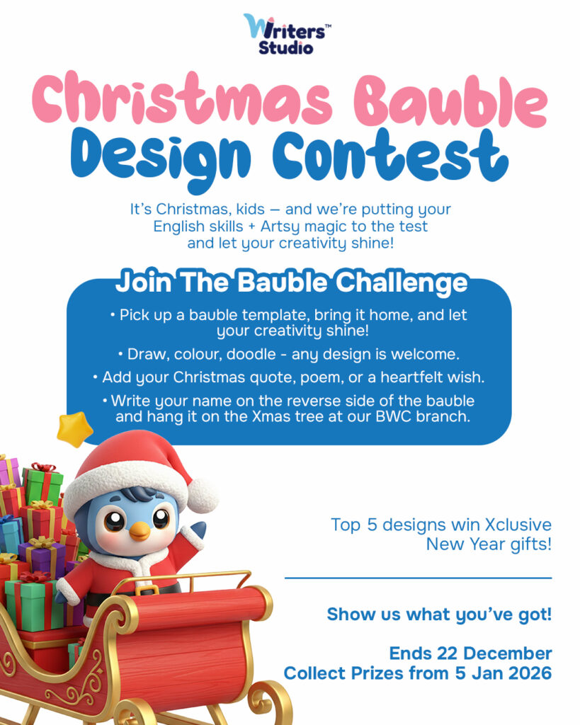 Writers Studio students and members of the public can look out for writing competitions that we organise annually. Our writing competitions see two phases – the qualifiers and the finals – so that we can pick the best writers. Both the judging criteria and judging process are strict, which means that only students with original ideas and independent work will receive the credit they deserve. Showcase your child’s storytelling talents, win WS dollars, and compete for attractive cash prizes in our competitions. Students who sign up shall also automatically be entitled to one free writing workshop. Stay tuned for the next creative writing competition!