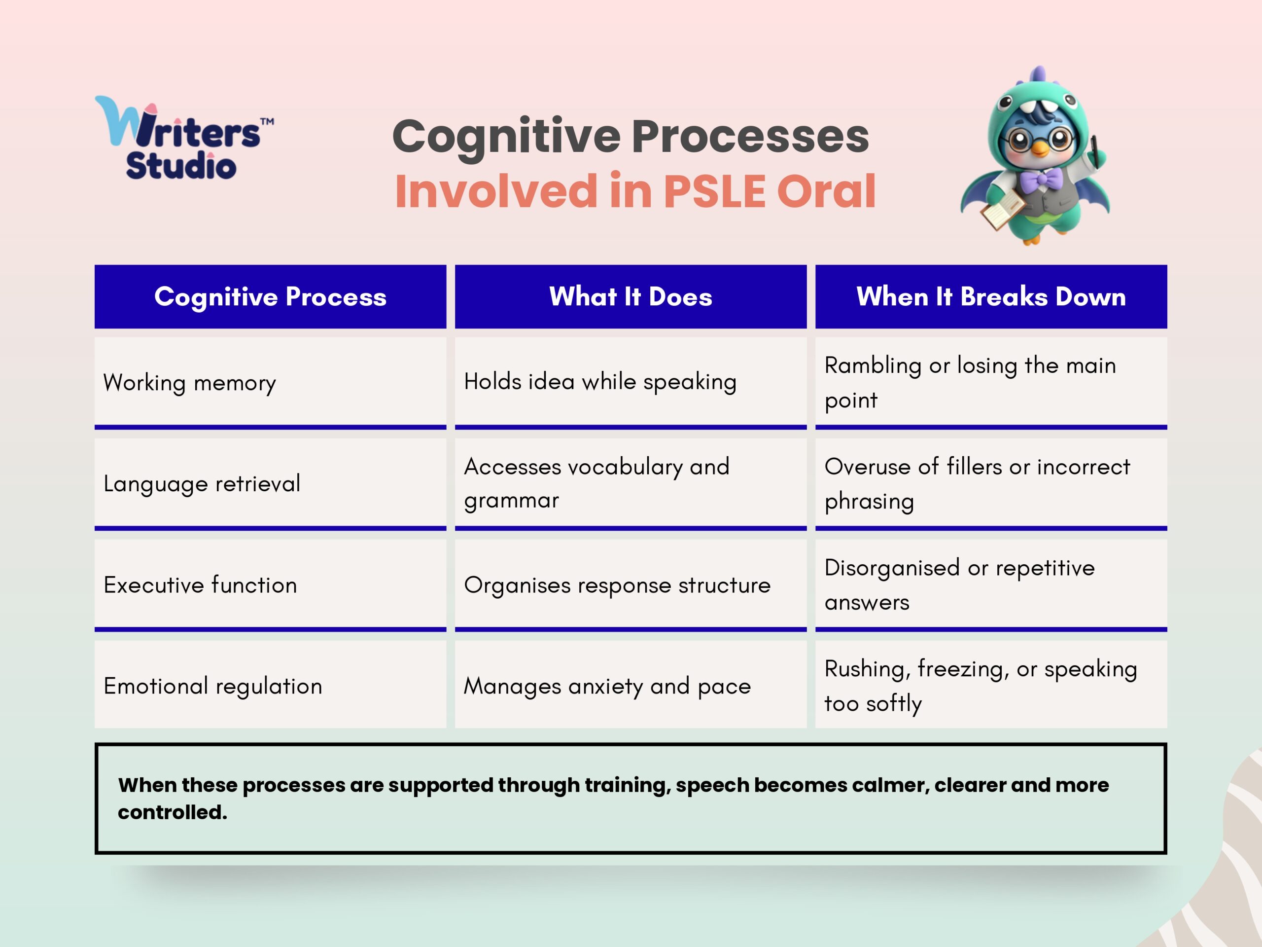 When parents think about PSLE Oral, the focus often falls on vocabulary, confidence, or how expressive a child sounds. Yet from a cognitive and linguistic perspective, speaking well is far less about performance and far more about how the brain organises and delivers thought.